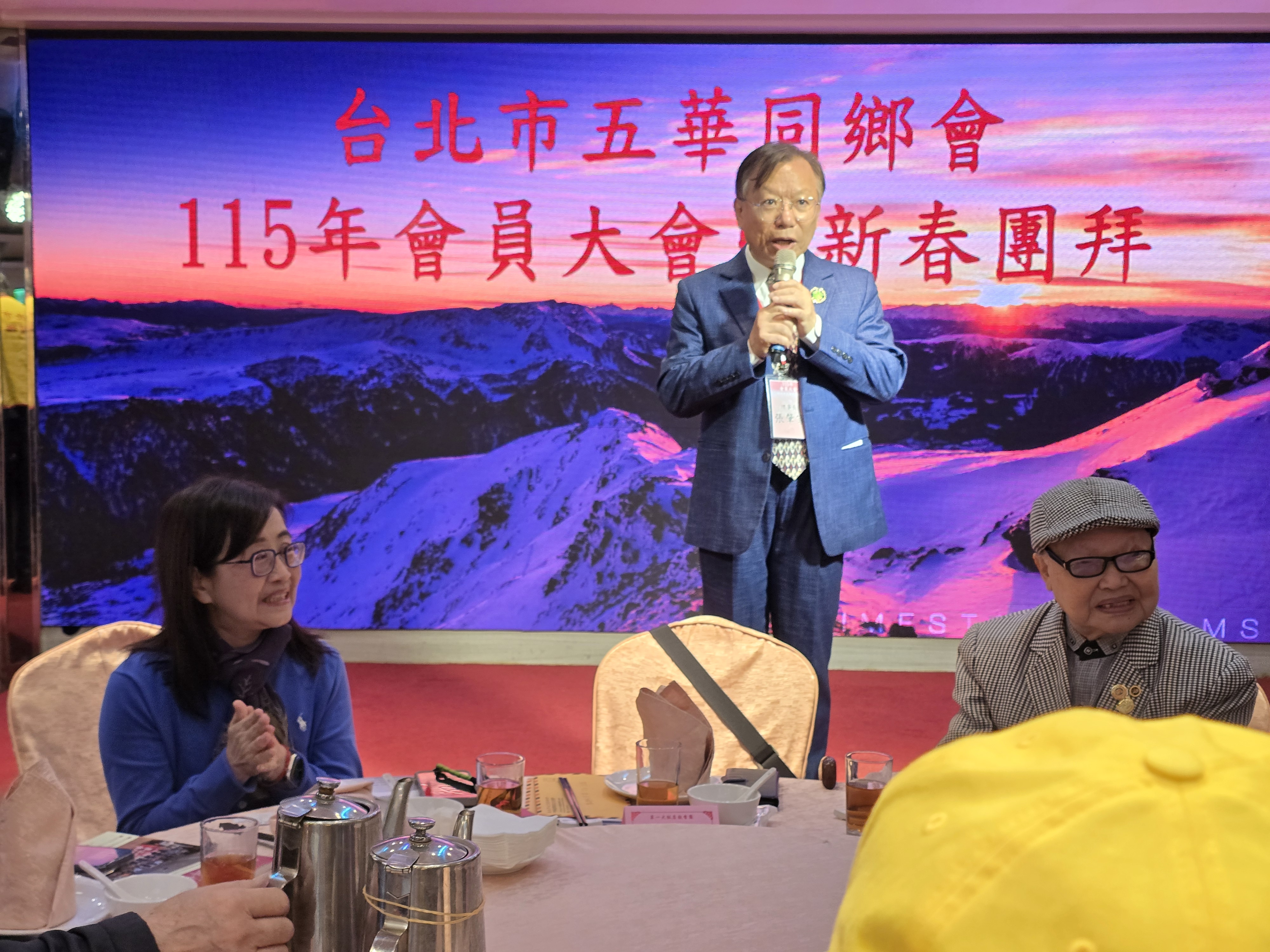 我們五華的鄉長、鄉親、各同鄉會、各社團的理事長與理監事們:大家好,大家恭喜,2024年龍年祝大家[龍躍千里、前程似錦,魚躍龍門、運氣興隆,舞龍迎春、喜滿人間,龍年大吉、幸運常伴,龍舞九天、好運連連,中華民國、國運昌隆,家家幸福美滿、人人身體康健] 。113年對台北市五華同鄉會是個特別的年份,我們五華同鄉會創會70週年了,孔子說七十而從心所欲,不踰矩。同鄉會運轉了70年達到一切由心而行,不再困惑,也沒有衝動,對所有的一切事務都能好好掌握,不會逾越規矩。當然能有今日的成就,要感謝先賢先輩、歷屆理事長與理監事們的努力與會員們的支持,才能讓會務推展蒸蒸日上順利圓滿。